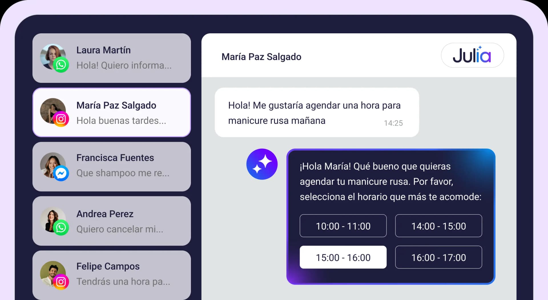 Convierte tus conversaciones en ventas. Gestiona 24/7 tu agenda y convierte cada conversación en más ventas.